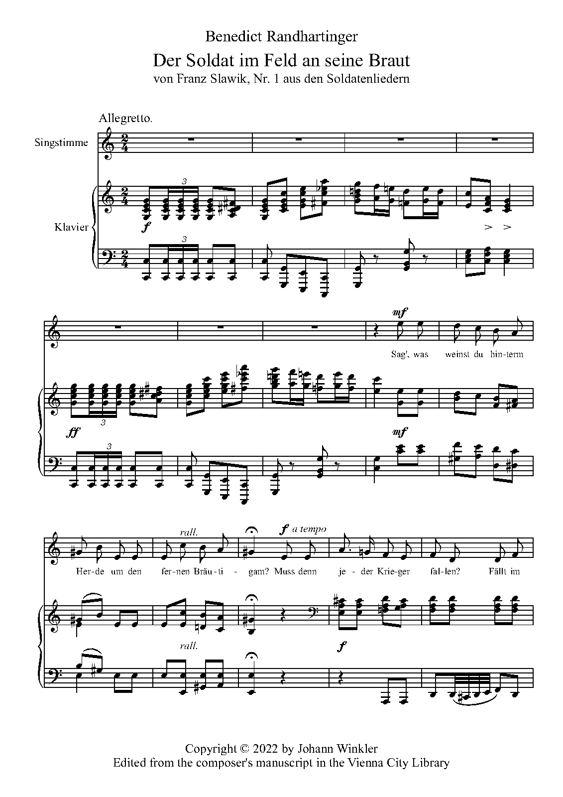 | Alternative. Title | Soldatenlieder No. 1: An seine Braut |