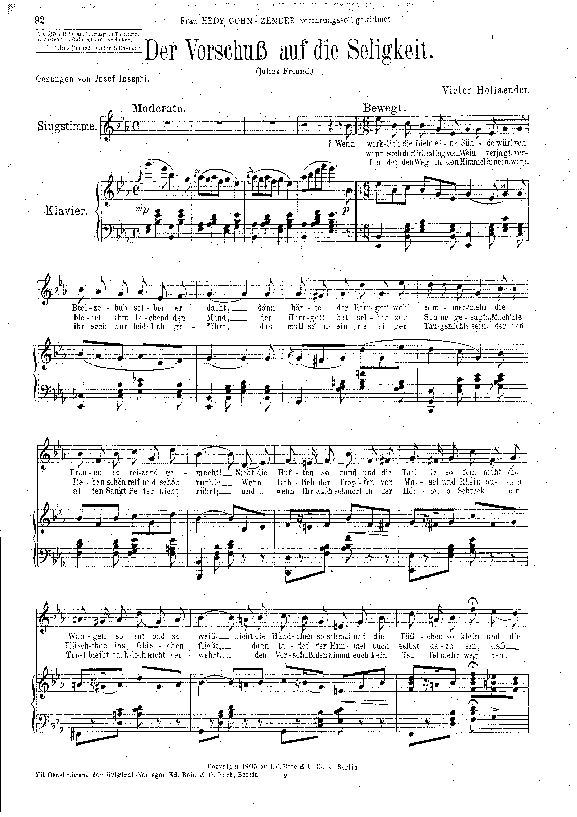 | Dedication | Frau Hedy Cohn-Zender verehrungsvoll gewidmet |