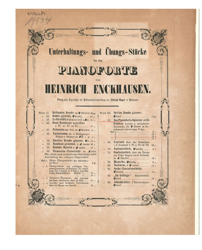 | Work Title | Des Pianoforte-Spielers erste Studien |