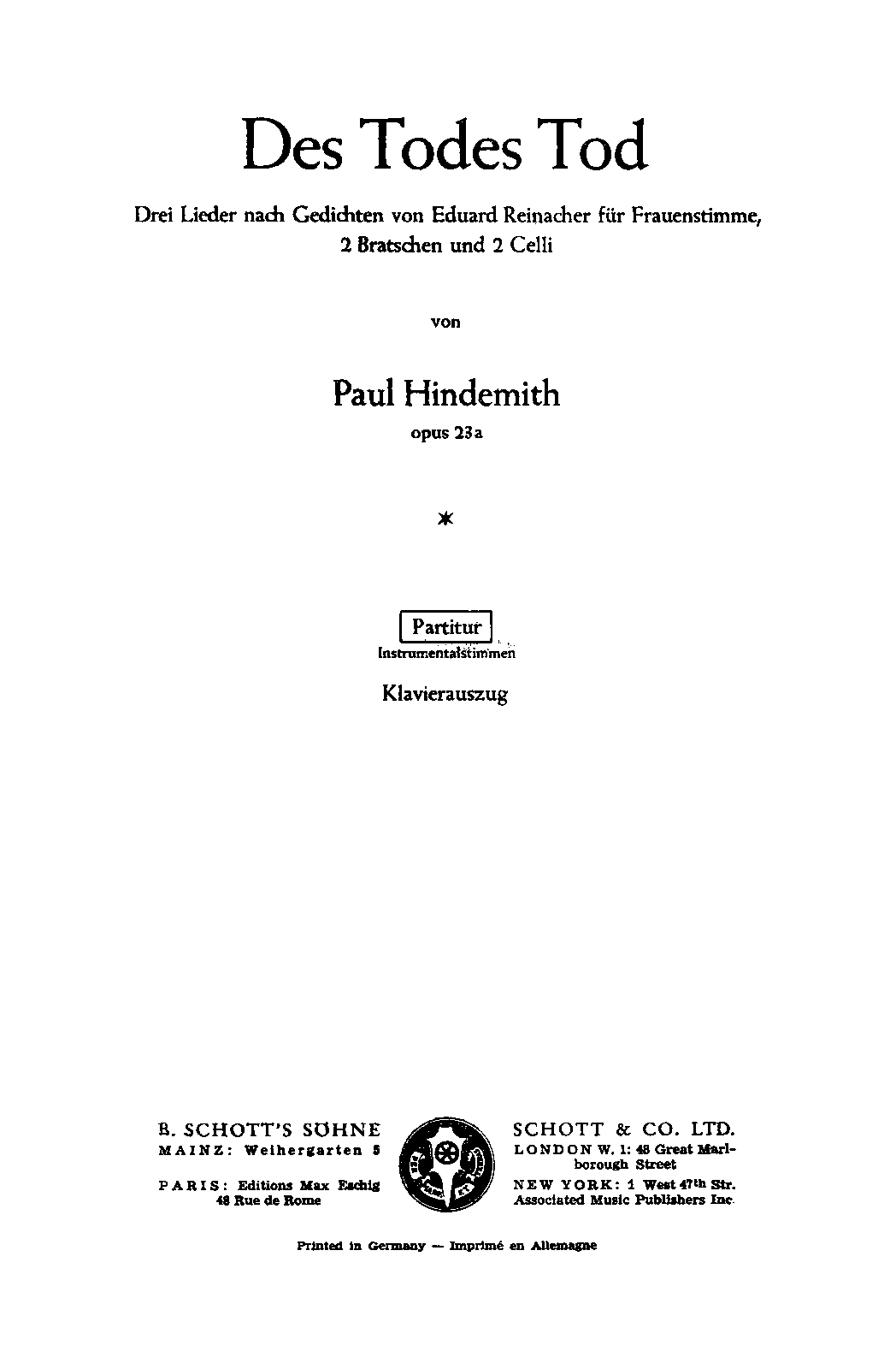 Des Todes Tod, Op.23a (Hindemith, Paul)