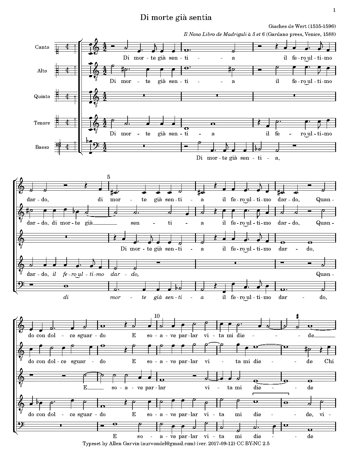 | First Publication | 1588 in Il Nono Libro de Madrigali à 5 et 6 (Gardano press, Venice) |