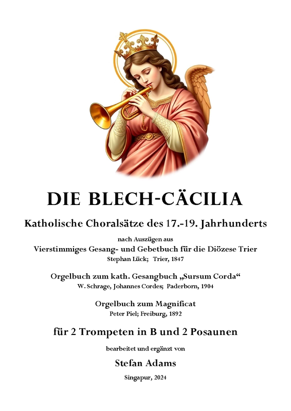 | Extra Information | This compilation of 350 German (mostly catholic) hymns from the 17th to 19th century is partly based on the four-part choral harmonisations in the "Gesang- und Gebetbuch für die Diözese Trier" by Stephan Lück, Trier/Germany published in 1847 (as found in the the digital collection of the Bayerische Staatsbibliothek München, Liturg. 1373 i) complemented by other contemporary sources. Keys have been adapted for the convenience of brass wind instruments. Where several harmonisations of the same hymn are included, the same key was preferred. Since Lück’s hymnal does not contain any preludes, preludes from other contemporary organ books (mostly the ones for the Catholic hymnal "Sursum corda" by W. Schrage, Paderborn, 1904 (ed. J. Cordes, source: Paderborn University Library) or the organ book by P. Piel on the Magnificat, Freiburg, 1892 (ed. J. Mohr) are supplemented. Introductions marked as "Intonations" are improvised from parts of the hymns without a copyright claim. A few of the hymns require larger brass ensembles as indicated in the register. |
