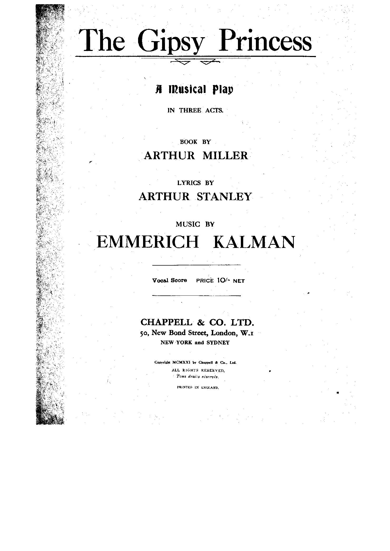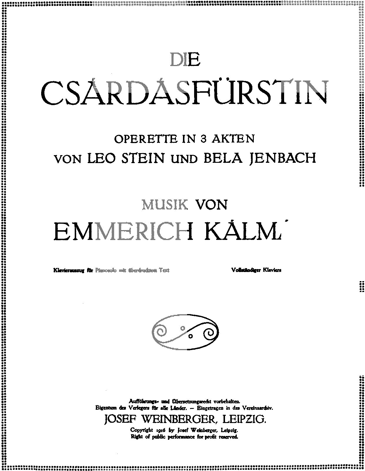 A Csárdáskirálynő The Gipsy Princess Operette in drei Akten