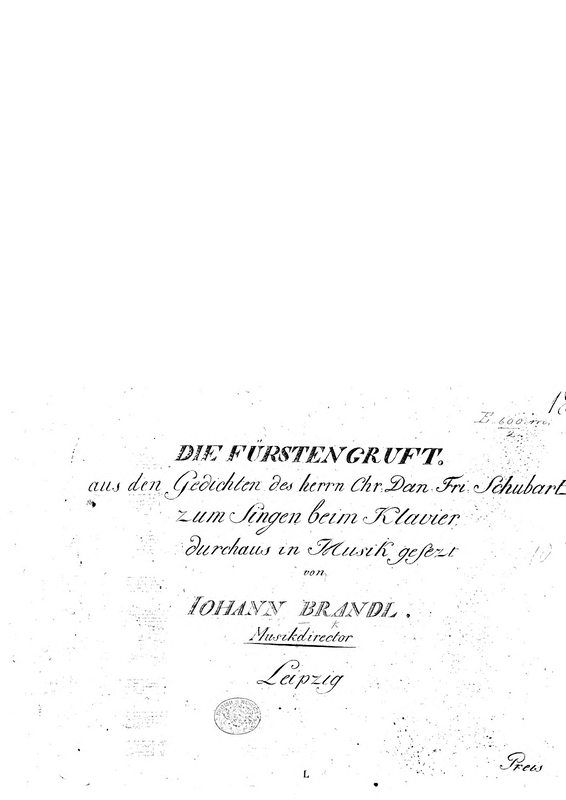| Alternative. Title | Die Fürstengruft. aus den Gedichten des herrn Chr. Dan. Fri. Schubart zum Singen beim Klavier durchaus in Musik gesezt von Iohann Brandl |