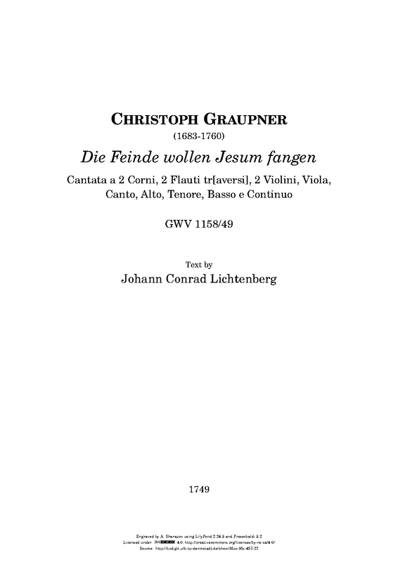 | Work Title | Die Feinde wollen Jesum fangen, GWV 1158/49 |