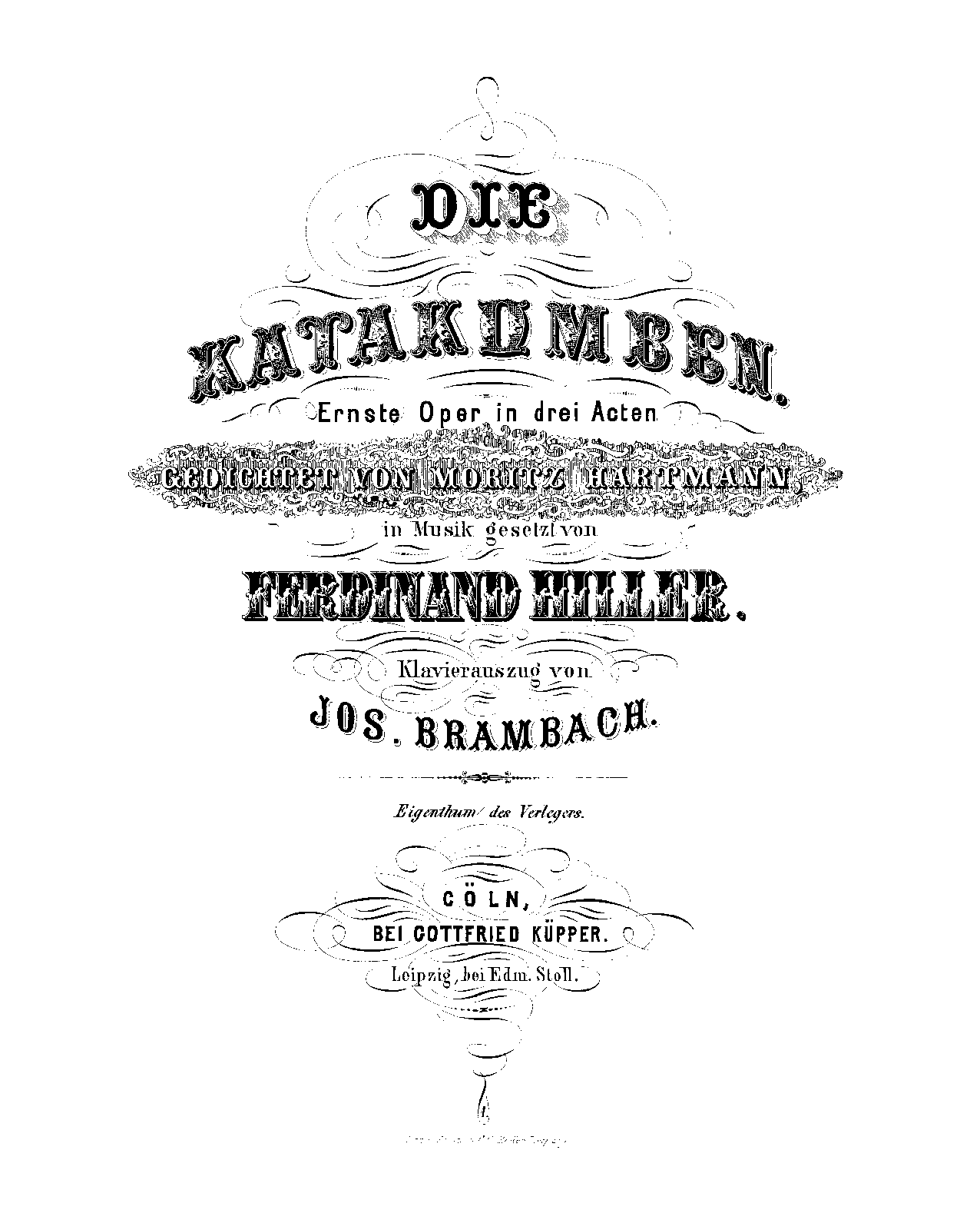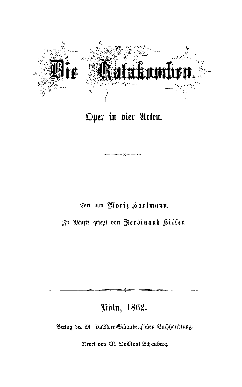 | First Publication. | 1862 – Cologne: DuMont-Schauberg'schen Buchhandlung (libretto) 1863 – Cologne: Küpper (vocal score) |
