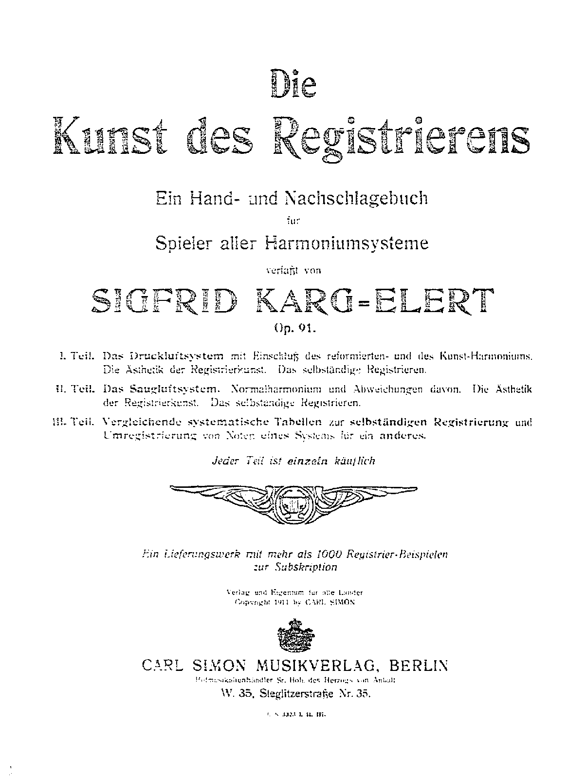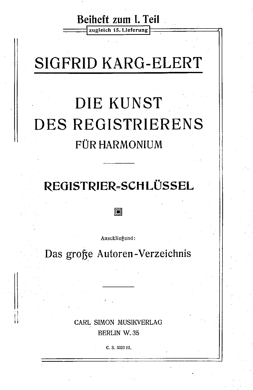 | Alternative. Title | Die Kunst des Registrierens. Ein Hand- und Nachschlagebuch für Spieler aller Harmoniumsysteme |