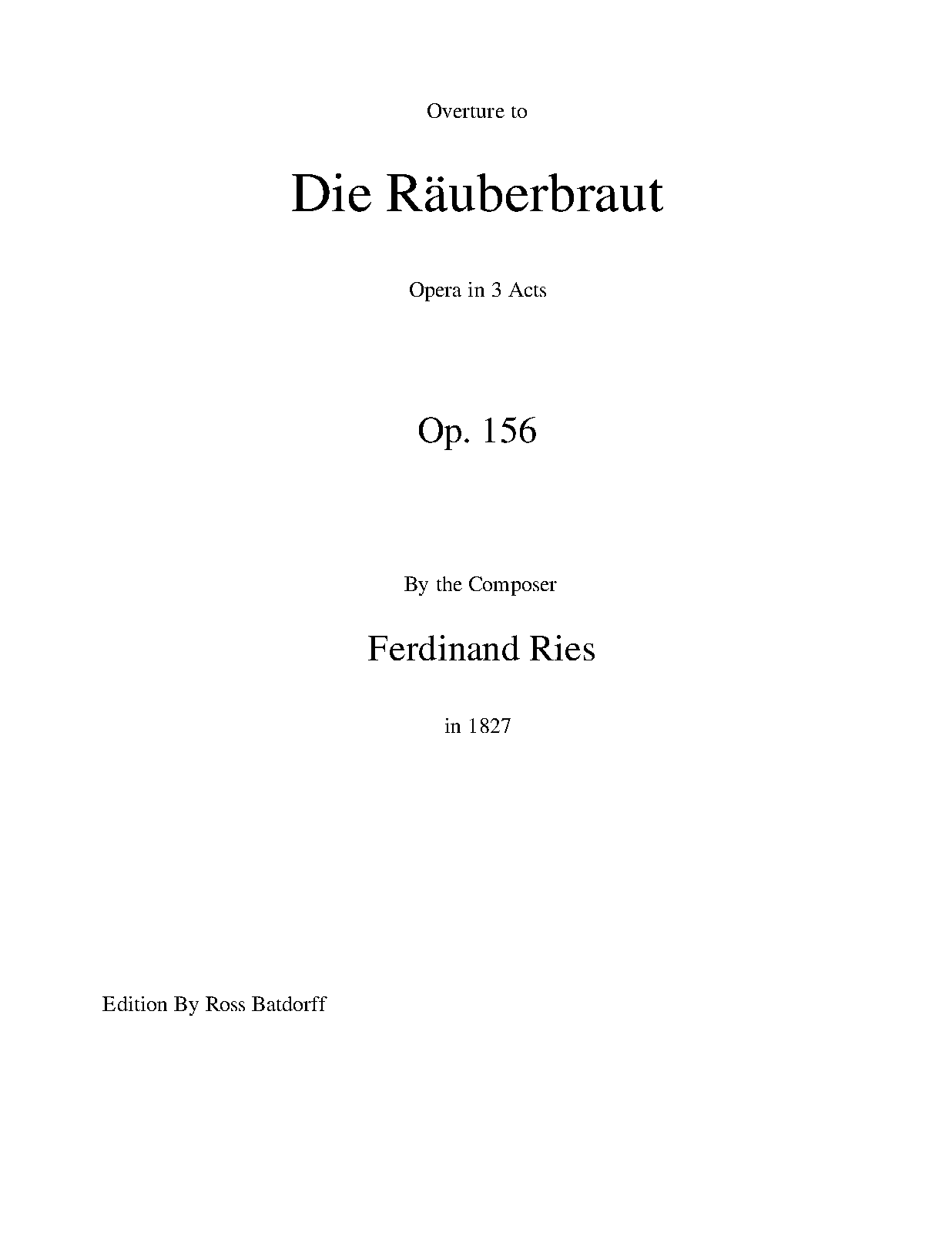 The manuscript (autograph) is at SBB (State Library of Berlin), scanned in, I think. The overture has been recorded on cpo (the opera may have been broadcast?). - Schissel (the complete(?) opera is now on a cpo 2-CD set.)