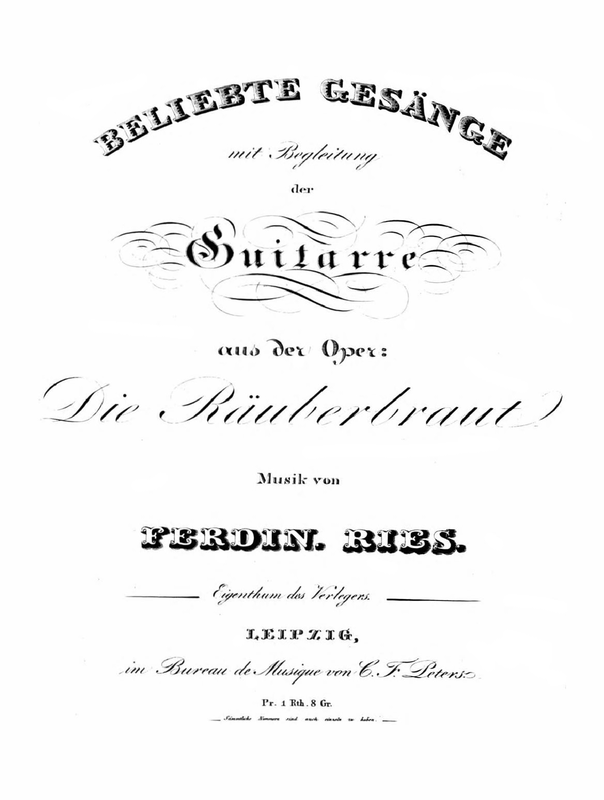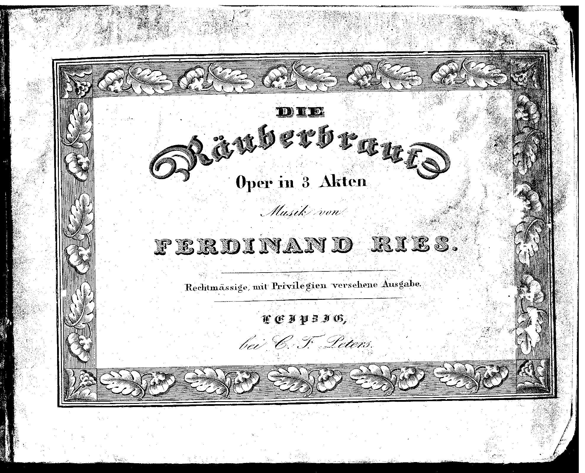 Published in a French/German vocal score (or piano reduction with words? not clear from description) (as La Fiancée du Brigand, by Richault) - Publication noted in the Bibliographie de la France 1e série, 18e année (32e de la collection), Nº 29, 18 Juillet 1829, p.504, r.207.