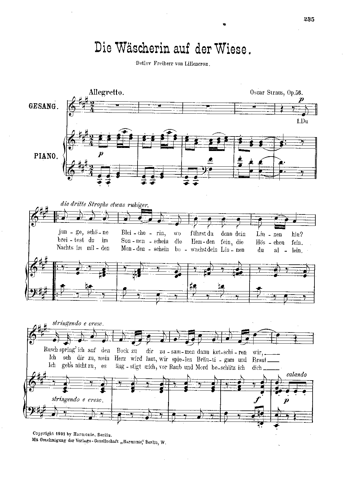Die Wäscherin auf der Wiese, Op.56 (Straus, Oscar)