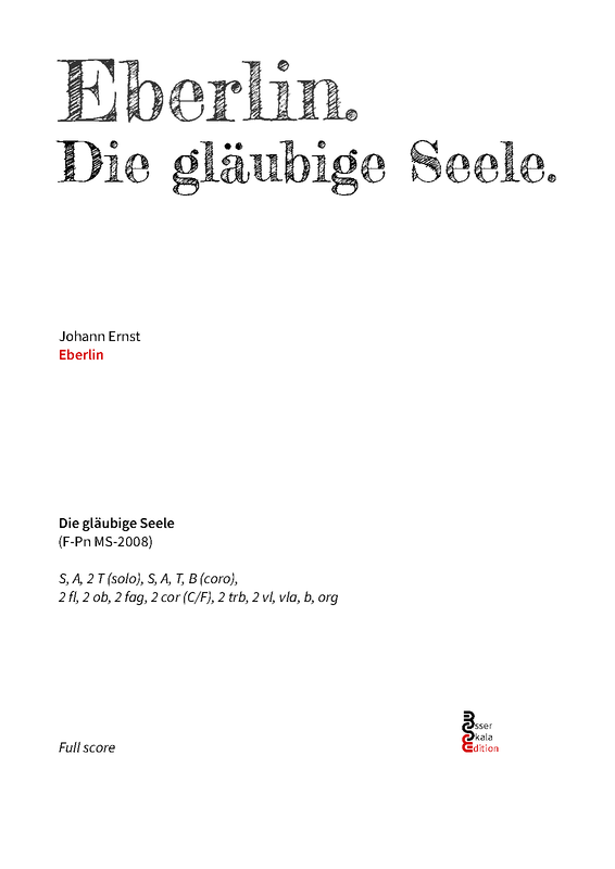 | Instrumentation | Voices: soprano, alto, tenor; mixed chorus (SATB) Orchestra: 2 flutes, 2 oboes, 2 bassoons, 2 horns, 2 trombones, strings, continuo (organ) |