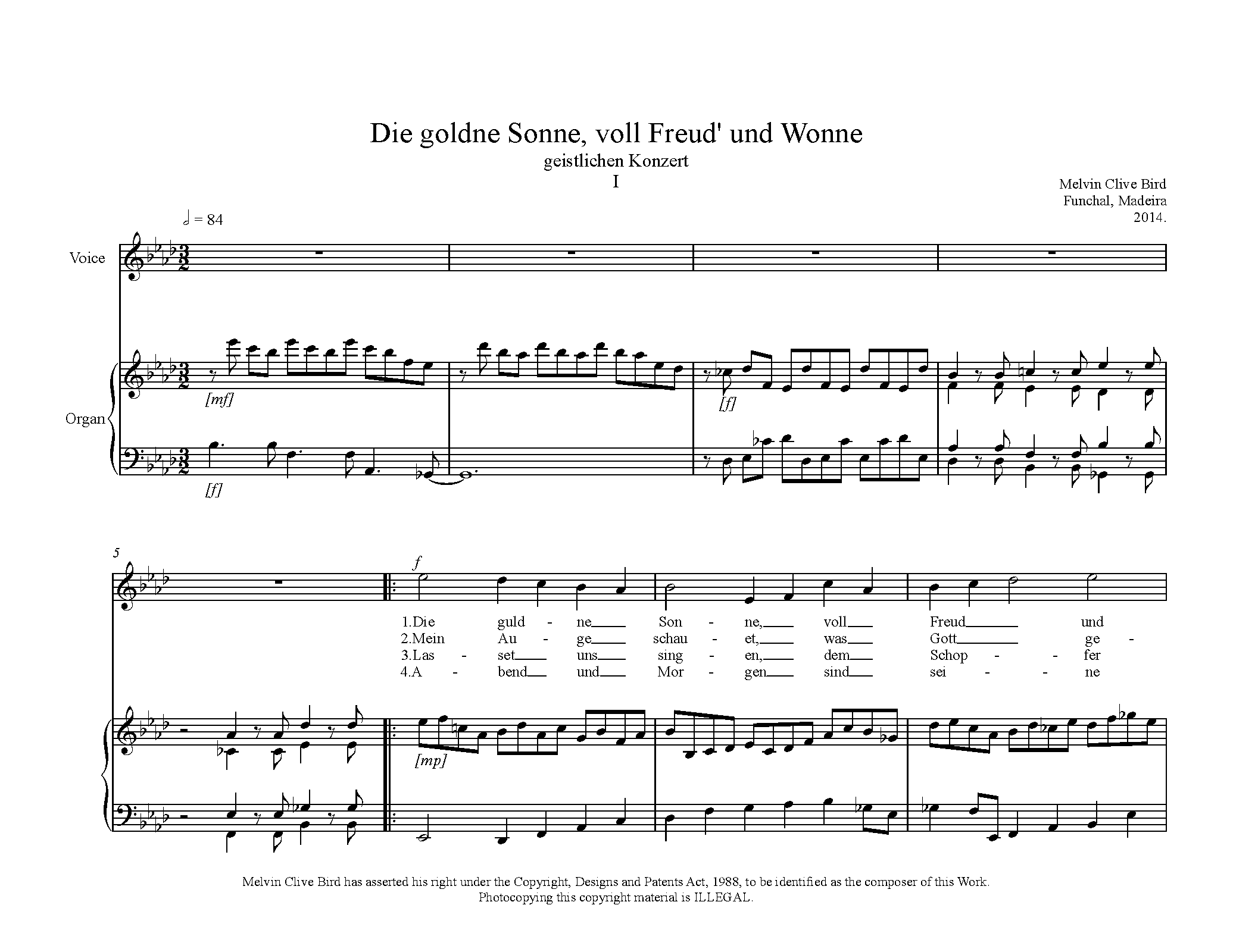 Melvin Bird has asserted his right under the Copyright, Designs and Patents Act, 1988, to be identified as the composer of this work. Please contact the composer for further information. The composer welcomes any performances and recordings. melvin.bird@hotmail.com