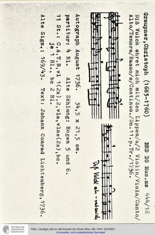 | Work Title | Dies Volk ehret mich mit den Lippen, GWV 1152/36 |