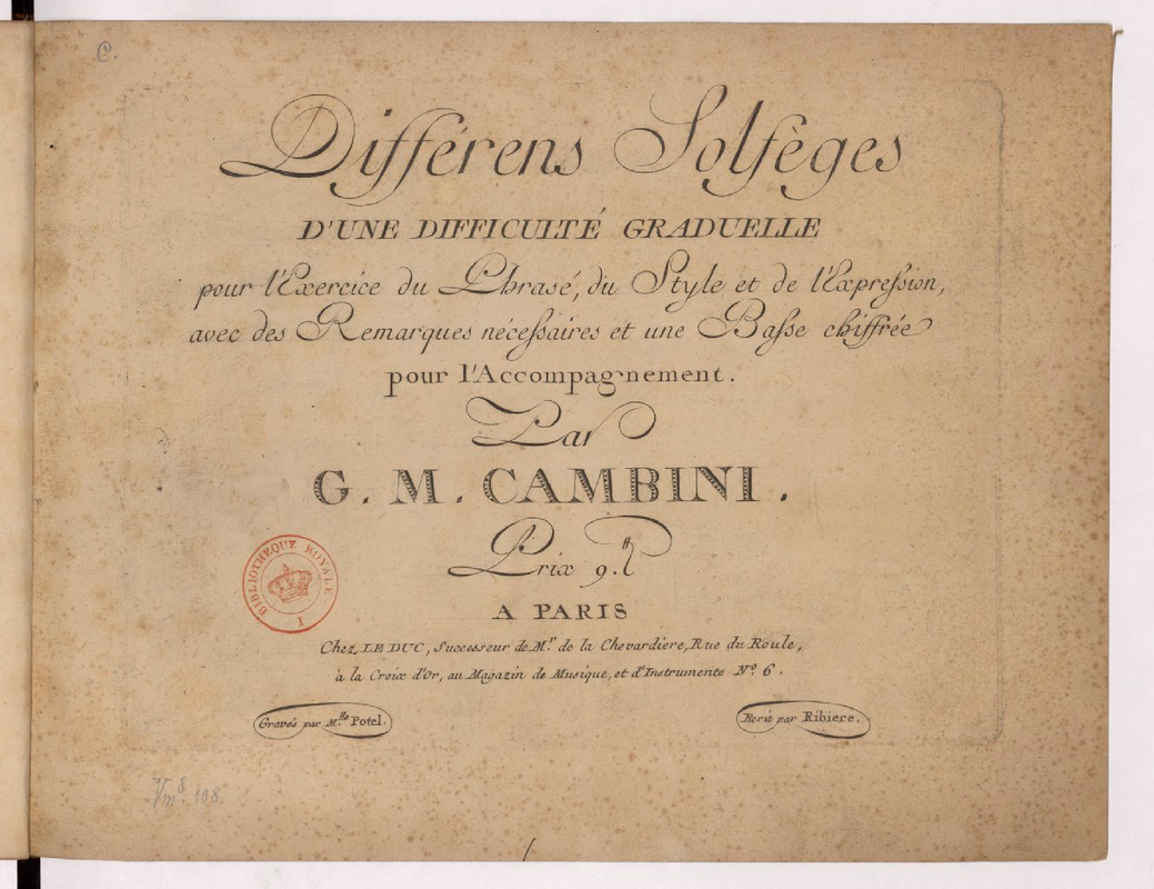 Différens Solfèges d'une difficulté graduelle pour l'Exercice du Phrasé, du Style et de l'Expression, avec des Remarques nécessaires et und Basse chiffrée pour l'Accompagnement