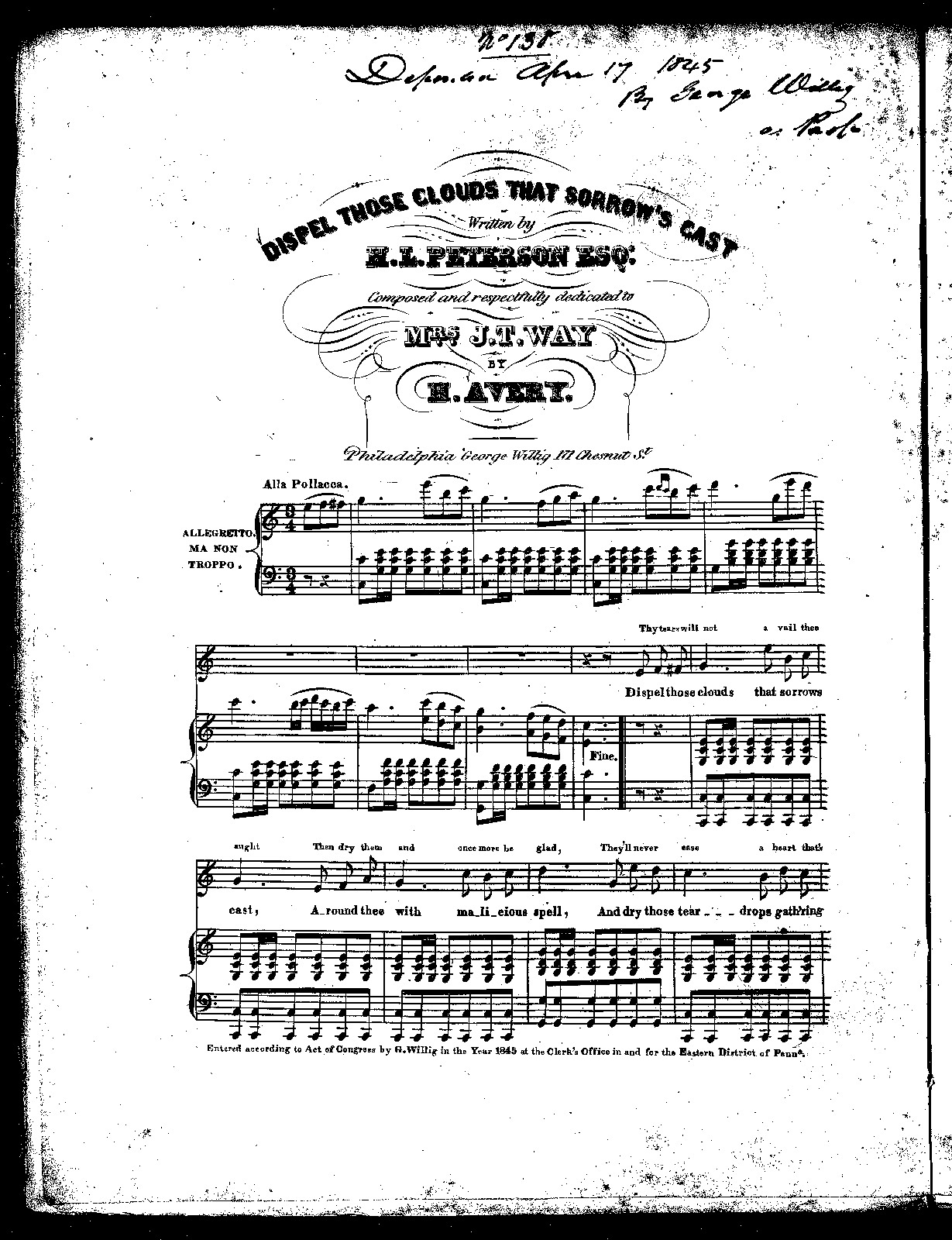 | Work Title | Dispel those Clouds that Sorrow's Cast |