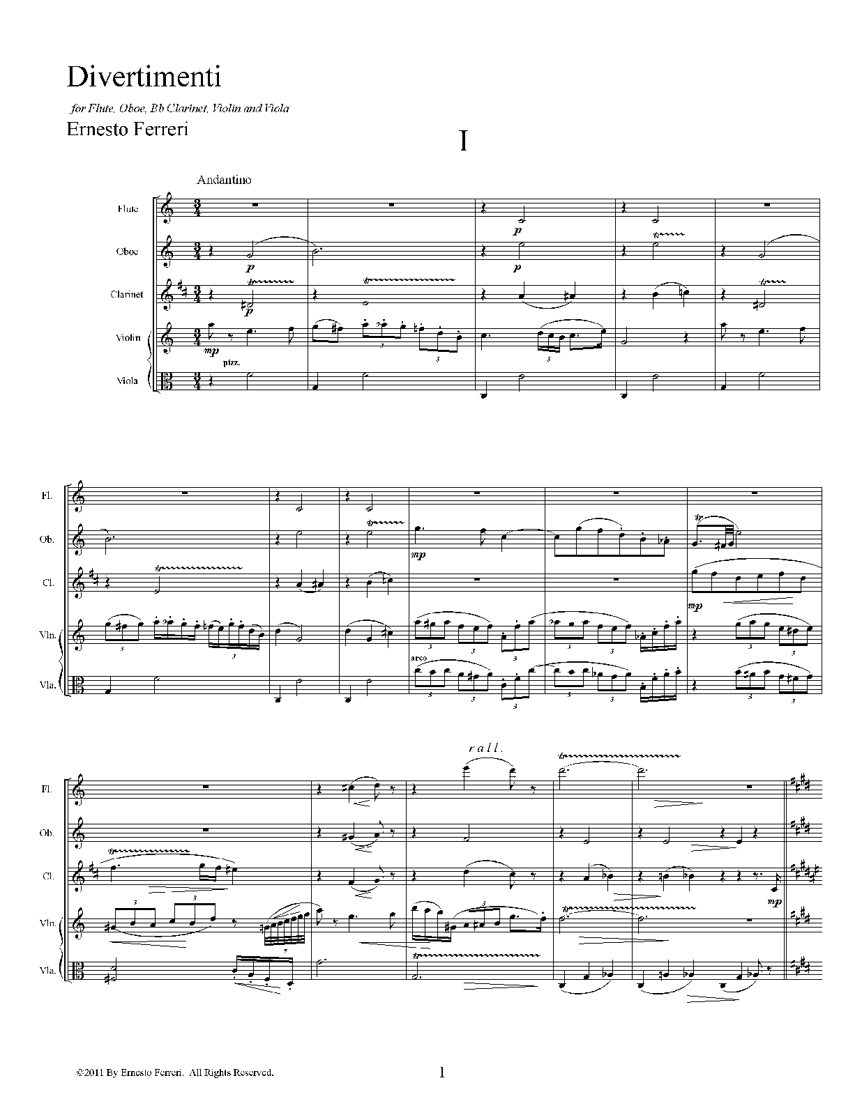 | Instrumentation | flute, oboe, clarinet, violin, viola |