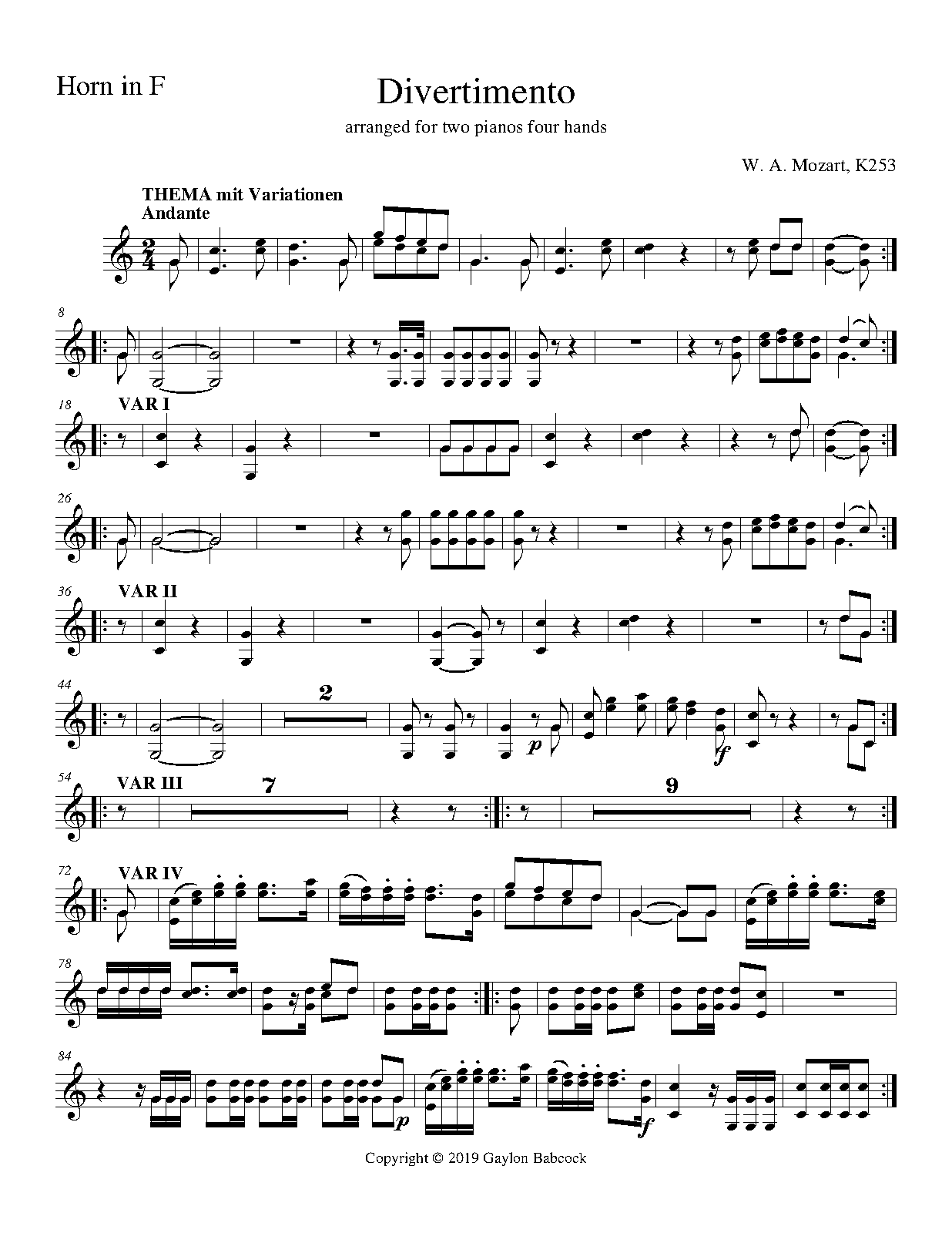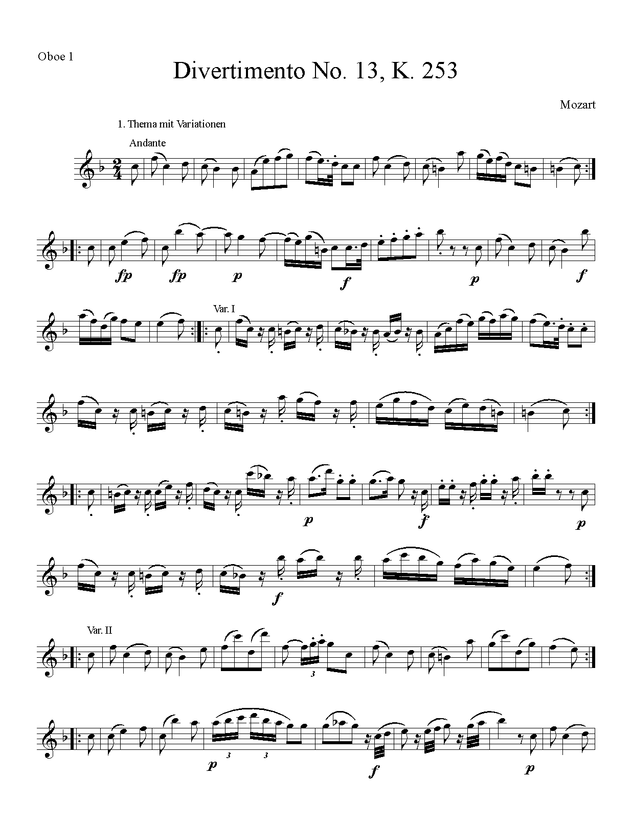 | Genre Categories | Divertimentos; For 2 oboes, 2 bassoons, 2 horns; Scores featuring the oboe; |