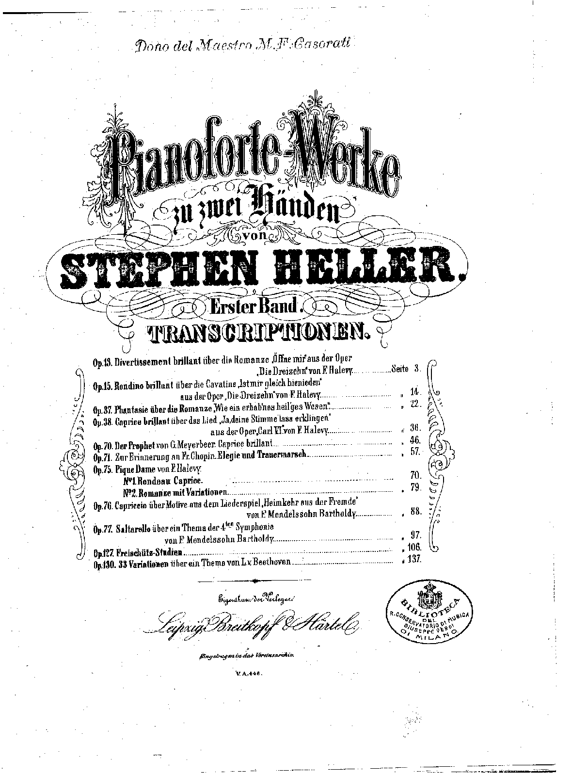 | Alternative. Title | Divertissement brillante über die Romanze „Oeffne mir“, aus Halévy, Die Dreizehn |