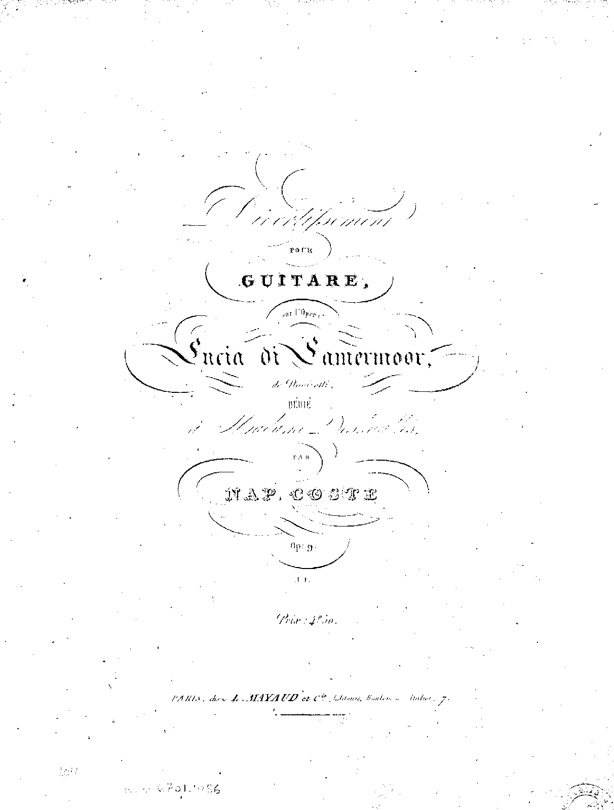 | Work Title | Divertissement pour Guitare sur l'Opera Lucia di Lamermoor, Op.9 |