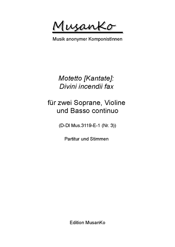 | Genre Categories | Motets; For 2 voices, violin, continuo; For voices with solo instruments; |
