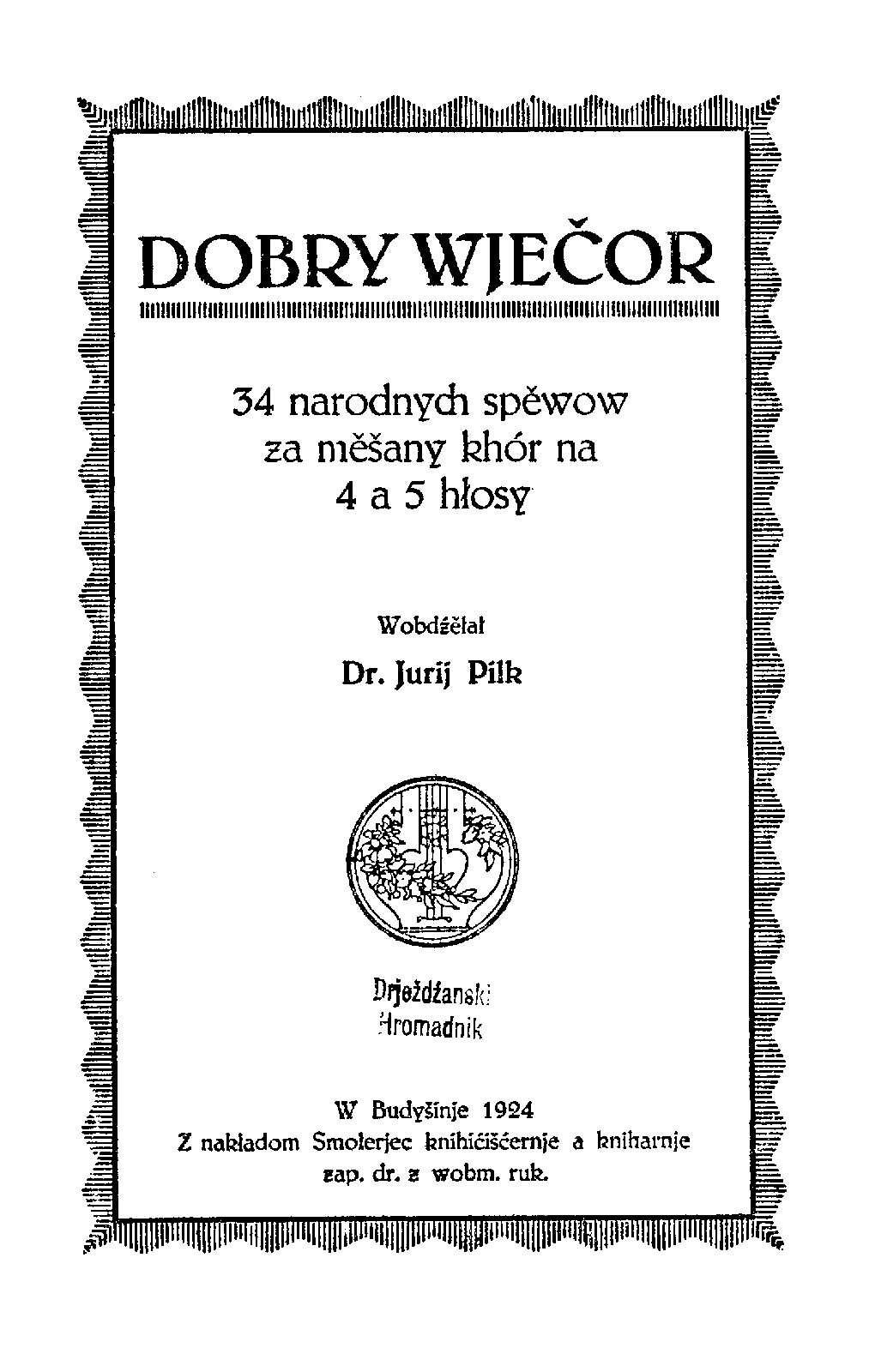 Contains Upper Sorbian and Lower Sorbian folk songs (not specified exactly), arranged by Jurij Pilk.