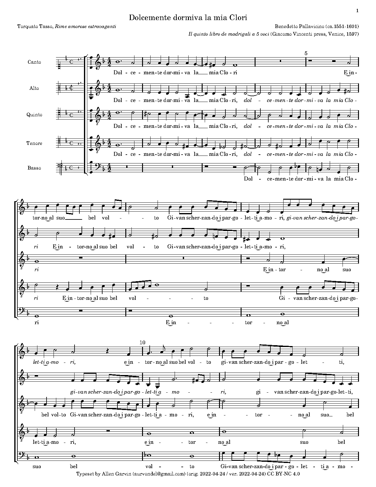 | First Publication | 1597 in Il quinto libro de madrigali a 5 voci (Venice: Vincenti press) |