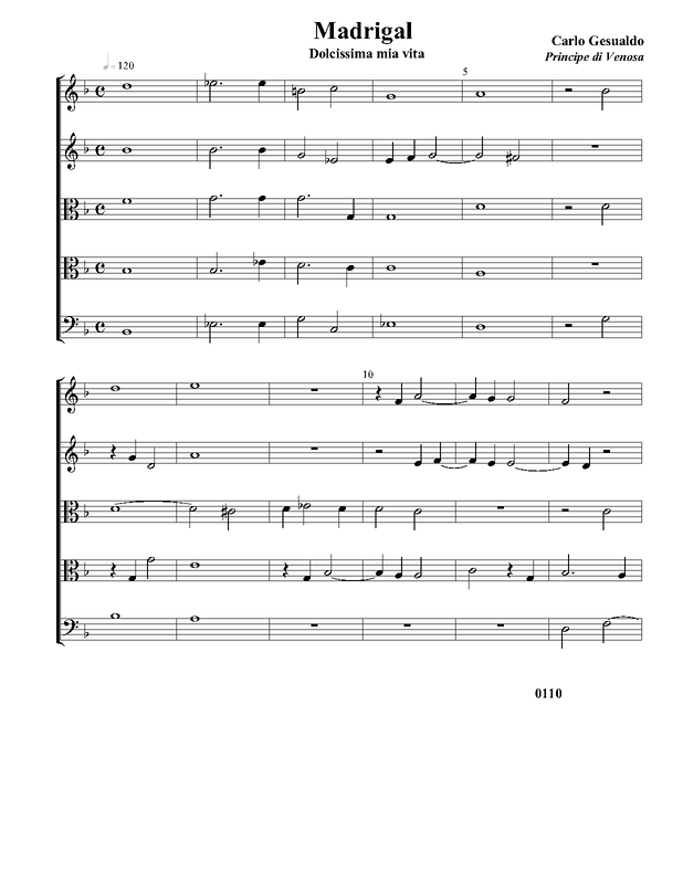 First Publication. 1611 in Madrigals, Libro 5 (No.4)