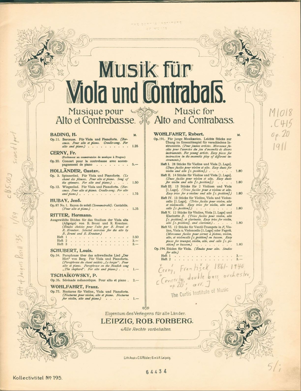 | Instrumentation | double bass, orchestra? (or piano); see below, Comments |