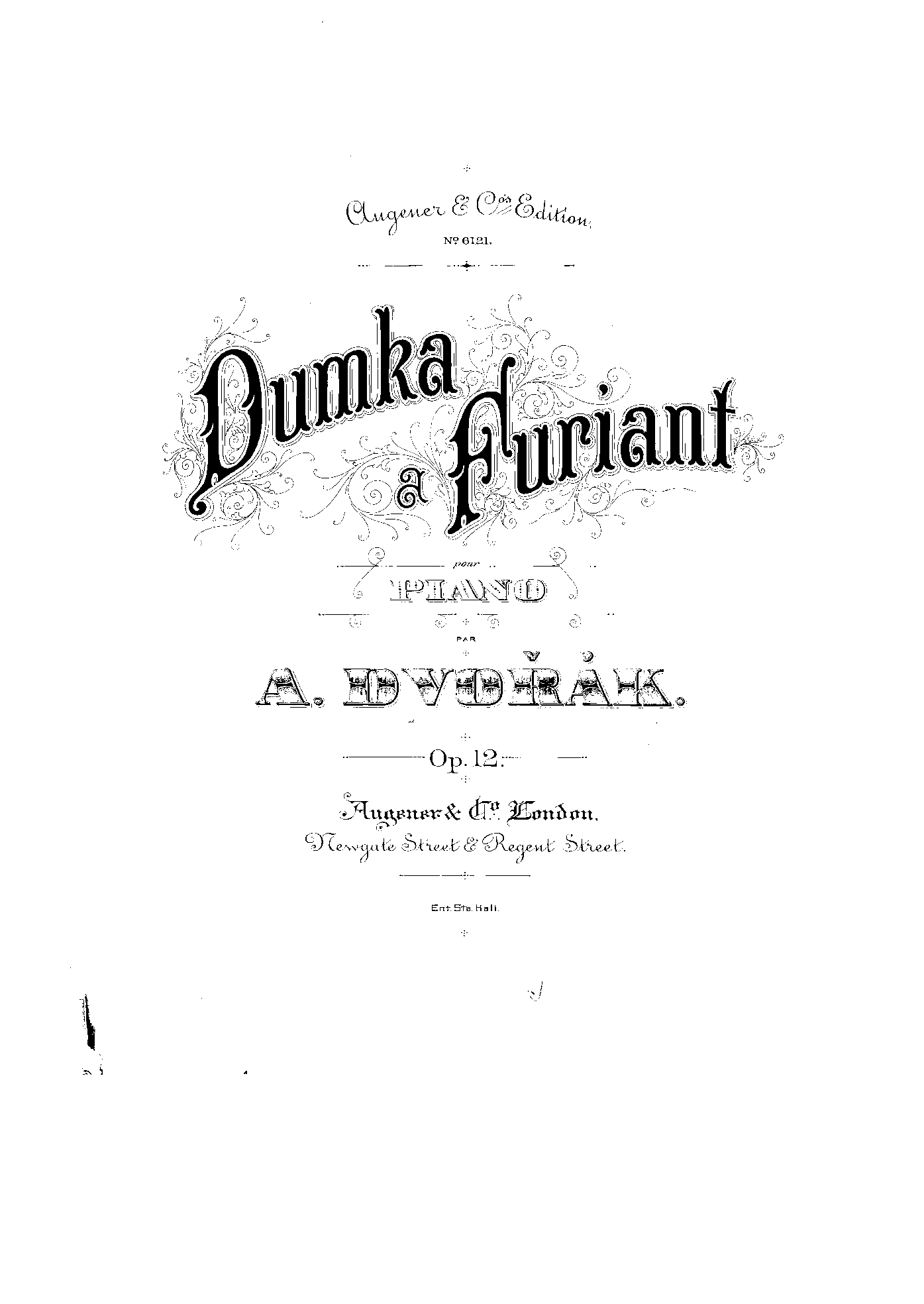Publisher. Info. London: Augener & Co., No. 6121, n.d.[1886*]. Plate 7333.