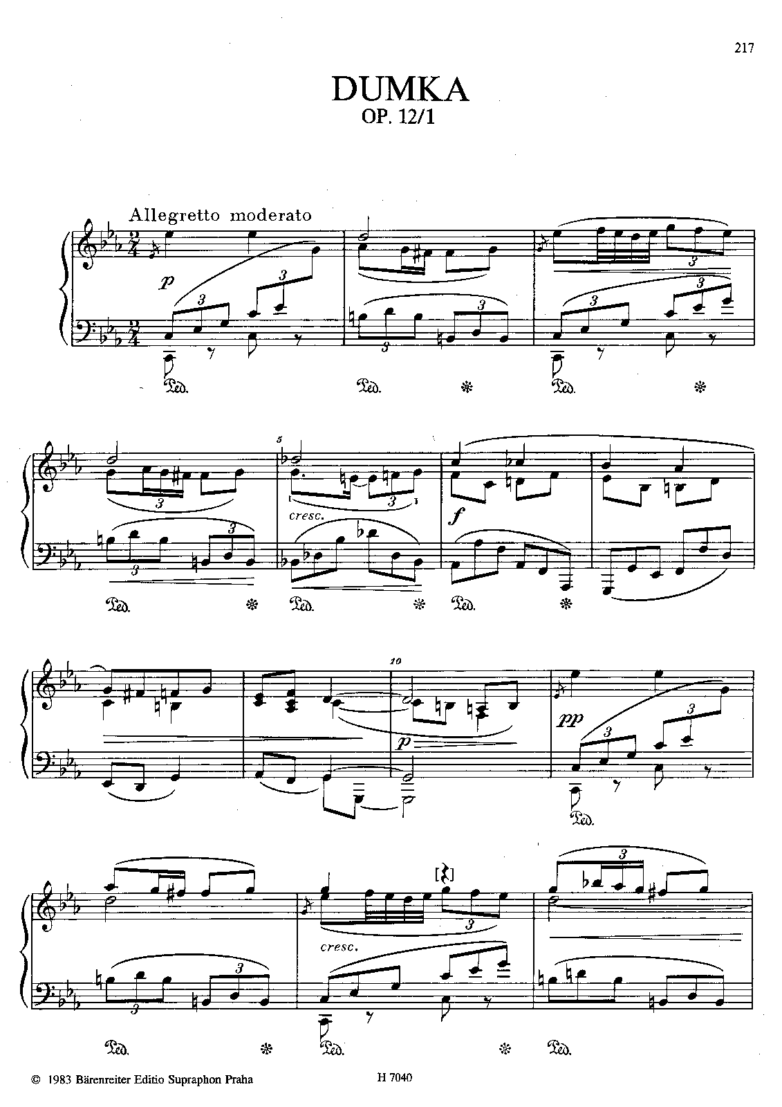 Reprinted Prague: Bärenreiter/Editio Supraphon, 1988. Plate H 7040.