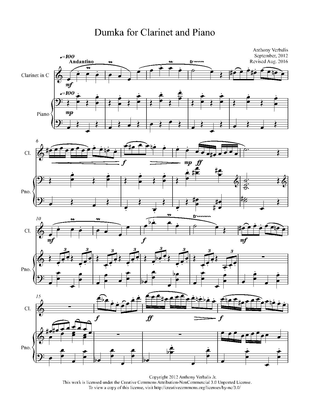 Dumka for Clarinet and Piano (Verbalis, Anthony)