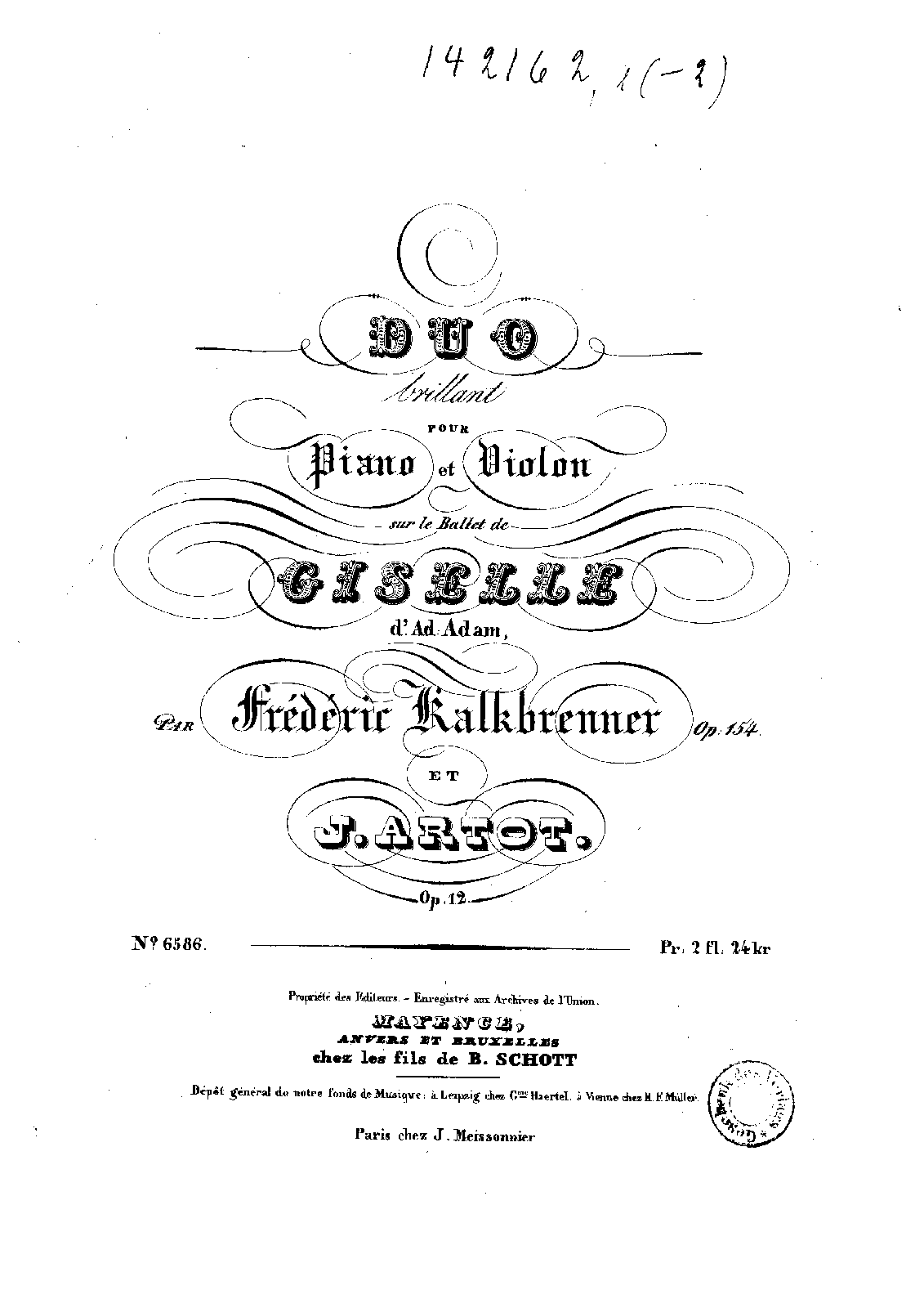 | Opus/Catalogue NumberOp./Cat. No. | Op.12 (Artôt) / Op.154 (Kalkbrenner) |