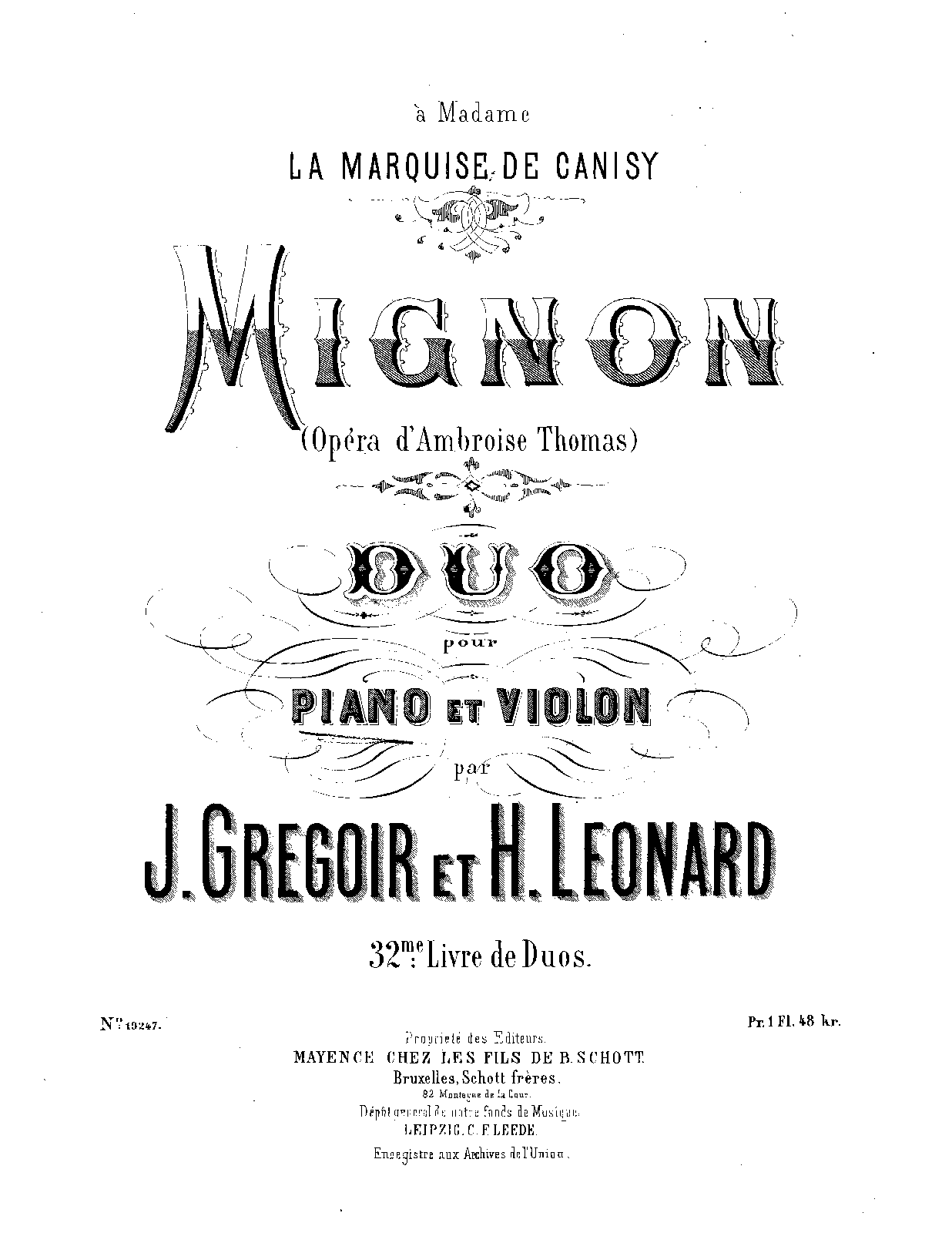 | Collaborative Work This work was co-authored by the Composer and Jacques Gregoir (1817-1876). |
