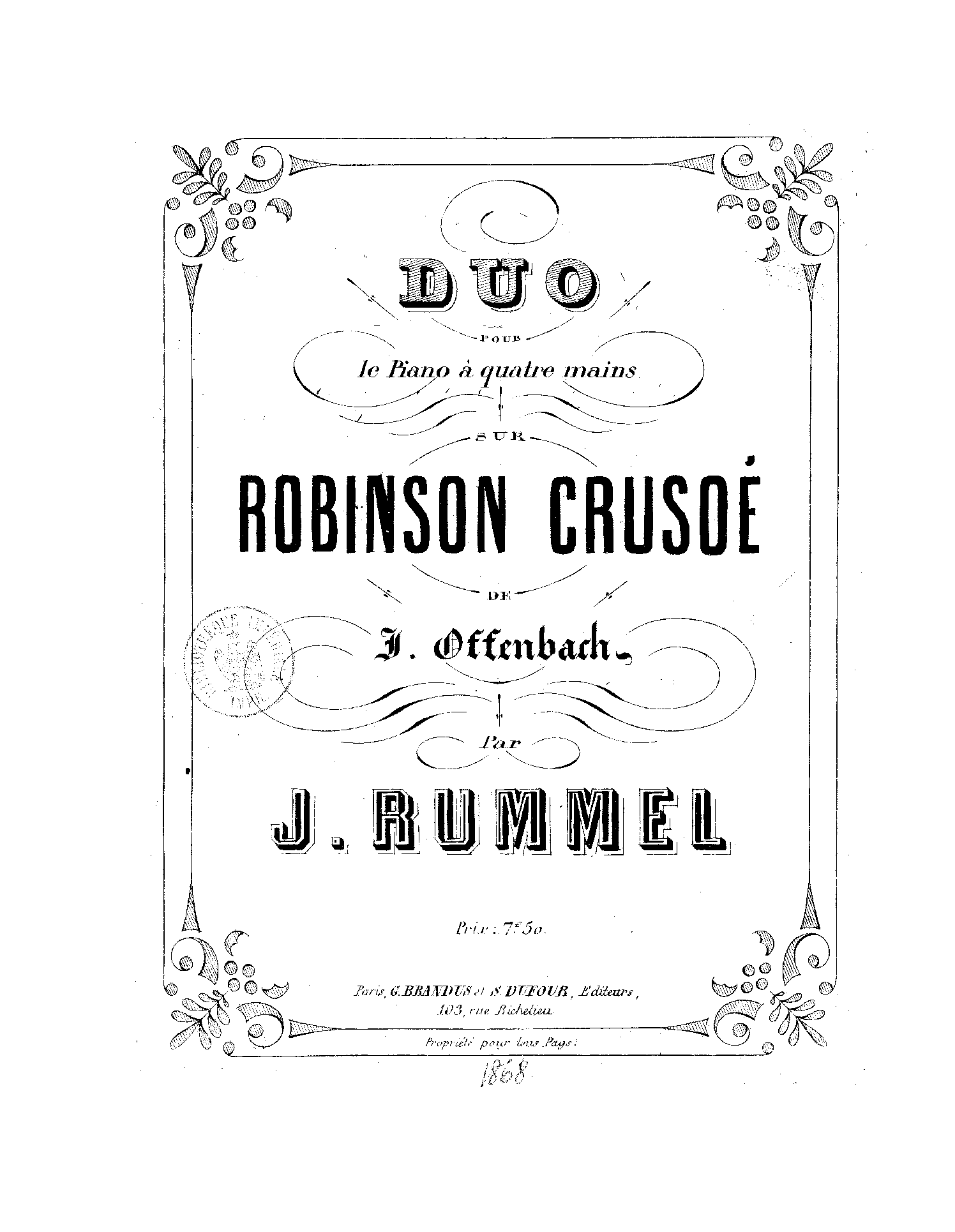 | Alternative. Title | Robinson Crusoé. Opéra comique de J. Offenbach. Duo à quatre mains. |