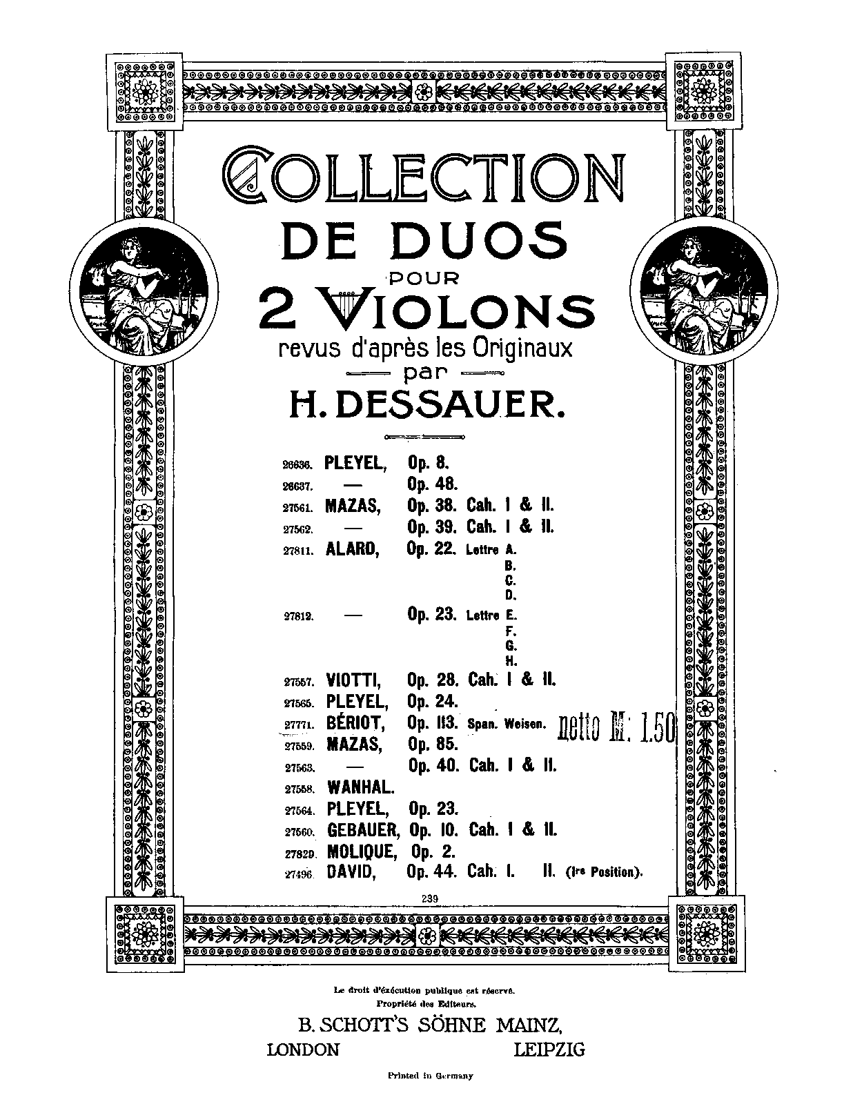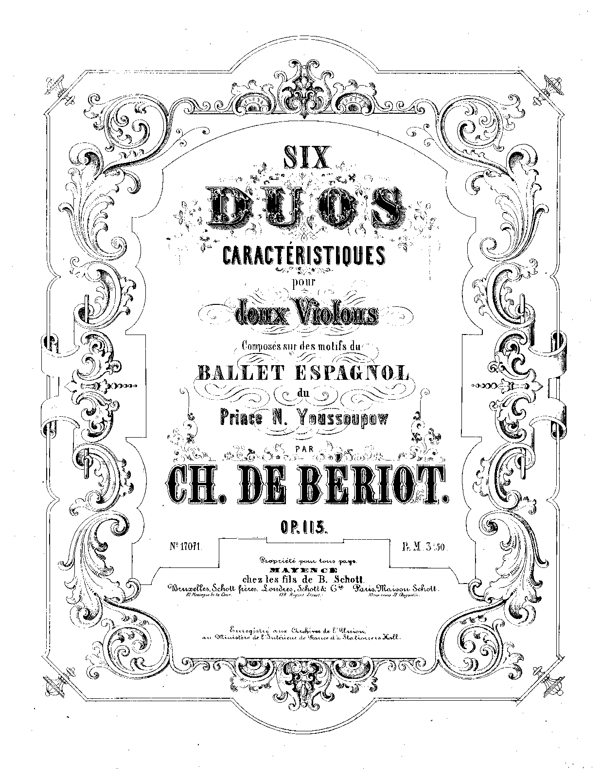 Six Duos caractéristiques pour deux violons, composés sur des motifs du Ballet espagnol du Prince N. Youssoupoff