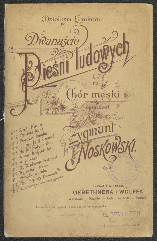 | Work Title | Dwanaście pieśni ludowych na chór męski |