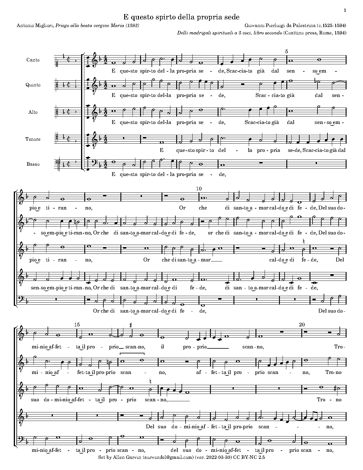 | First Publication. | 1594 in Delli madrigali spirituali a 5 voci, libro secondo (Roma: Coattino press) |