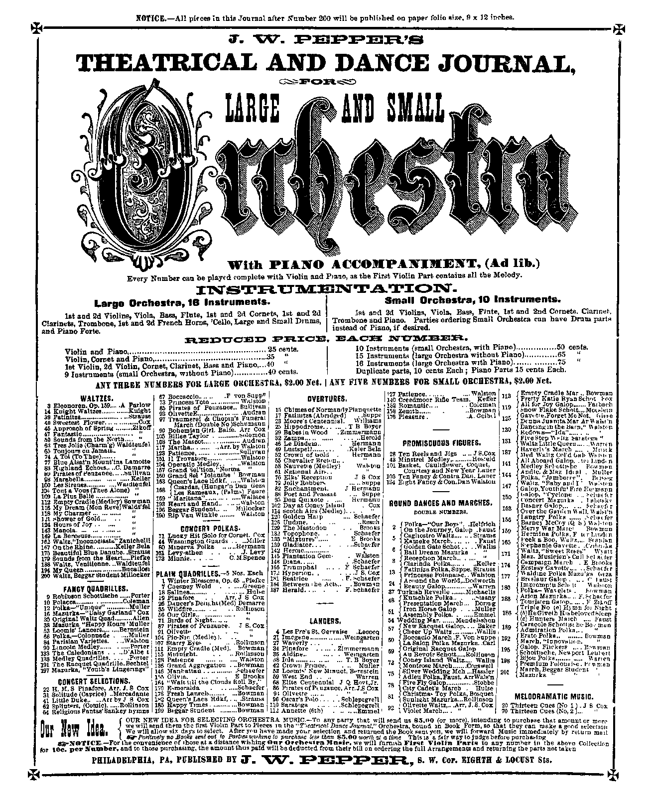 | Instrumentation | Orchestra (full): flute, 2 clarinets (A) + 2 horns (D), 2 cornets (A), trombone + drums, triangle + piano (ad lib.) + strings Orchestra (small): flute, clarinet + 2 cornets, trombone + piano (ad lib.) + strings |