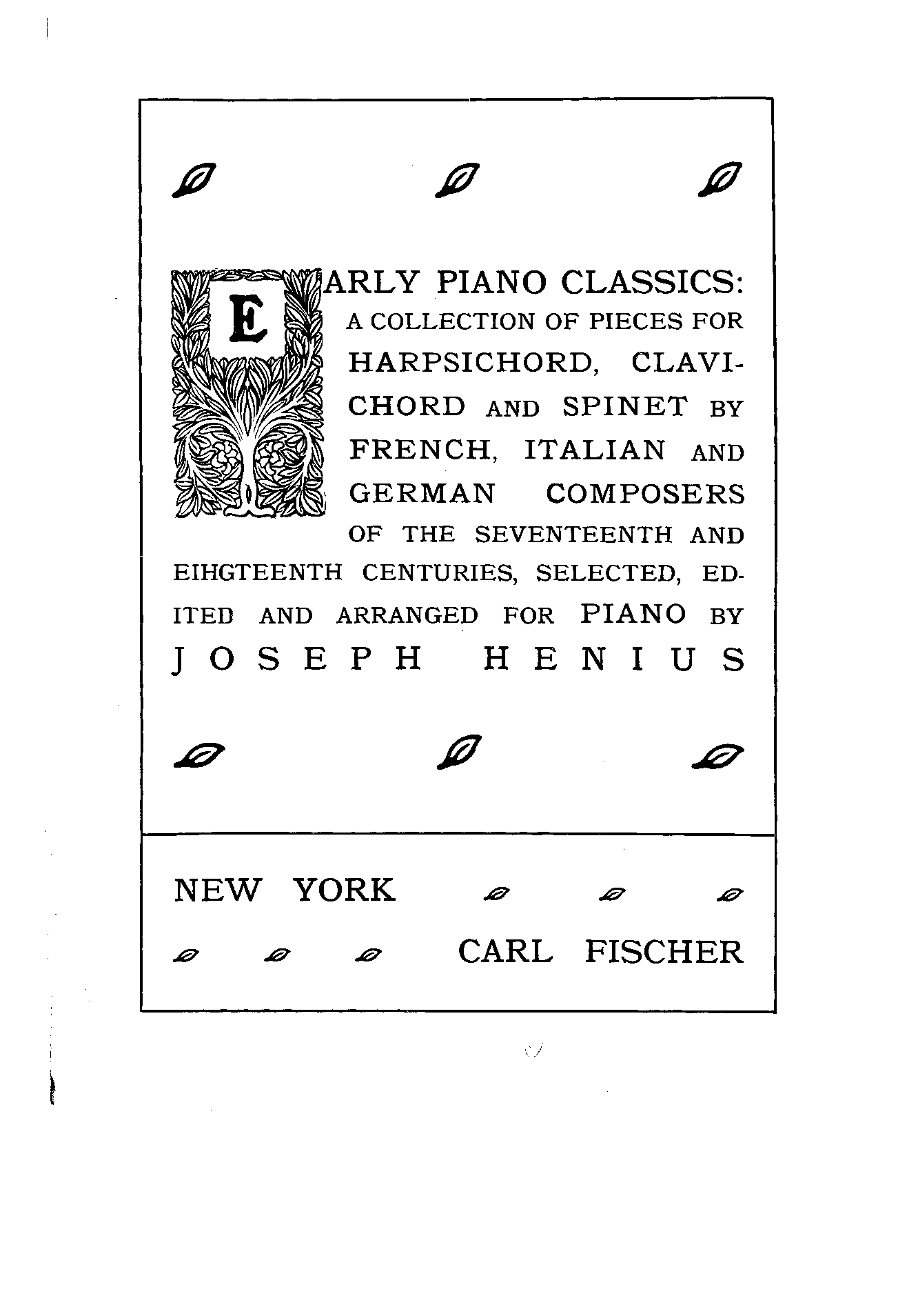 | Alternative. Title | A collection of pieces for harpsichord, clavichord and spinet by French, Italian and German composers of the seventeenth and eighteenth centuries |