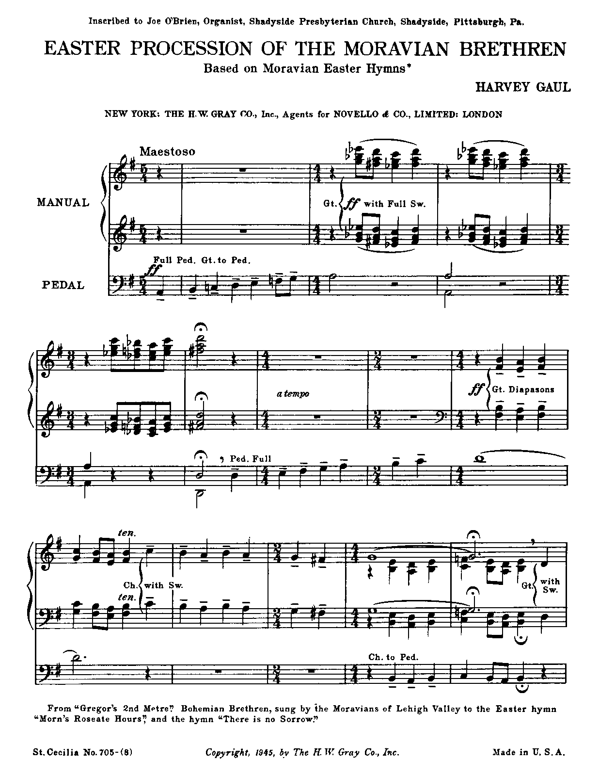 | Dedication | Inscribed to Joe O'Brien, Organist, Shadyside Presbyterian Church, Shadyside, Pittsburgh, Pa. |