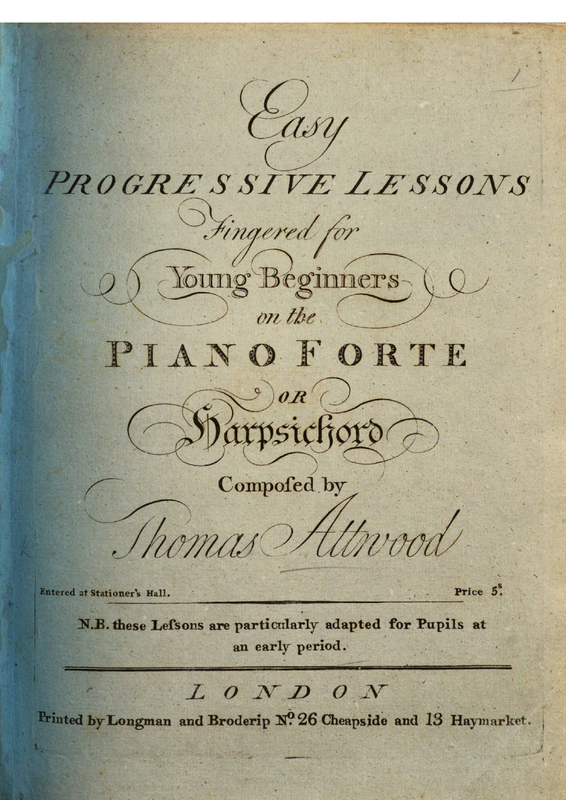 | Alternative. Title | Easy Progressive Lessons Fingered for Young Beginners on the Piano Forte or Harpsichord Composed by Thomas Attwood. N.B. these Lessons are particularly adapted for Pupils at an early period. |