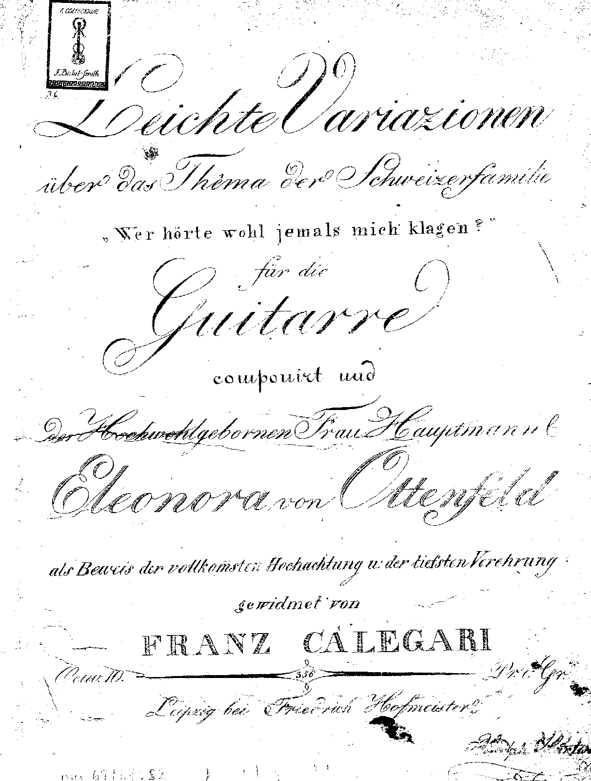 Easy Variations on the Theme by a Swiss family, 'Wer hört wohl jemals mich klagen?', Op.10