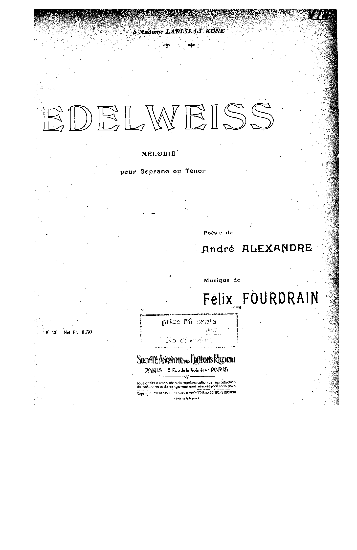 | Dedication | à Madame Ladislas Kone |