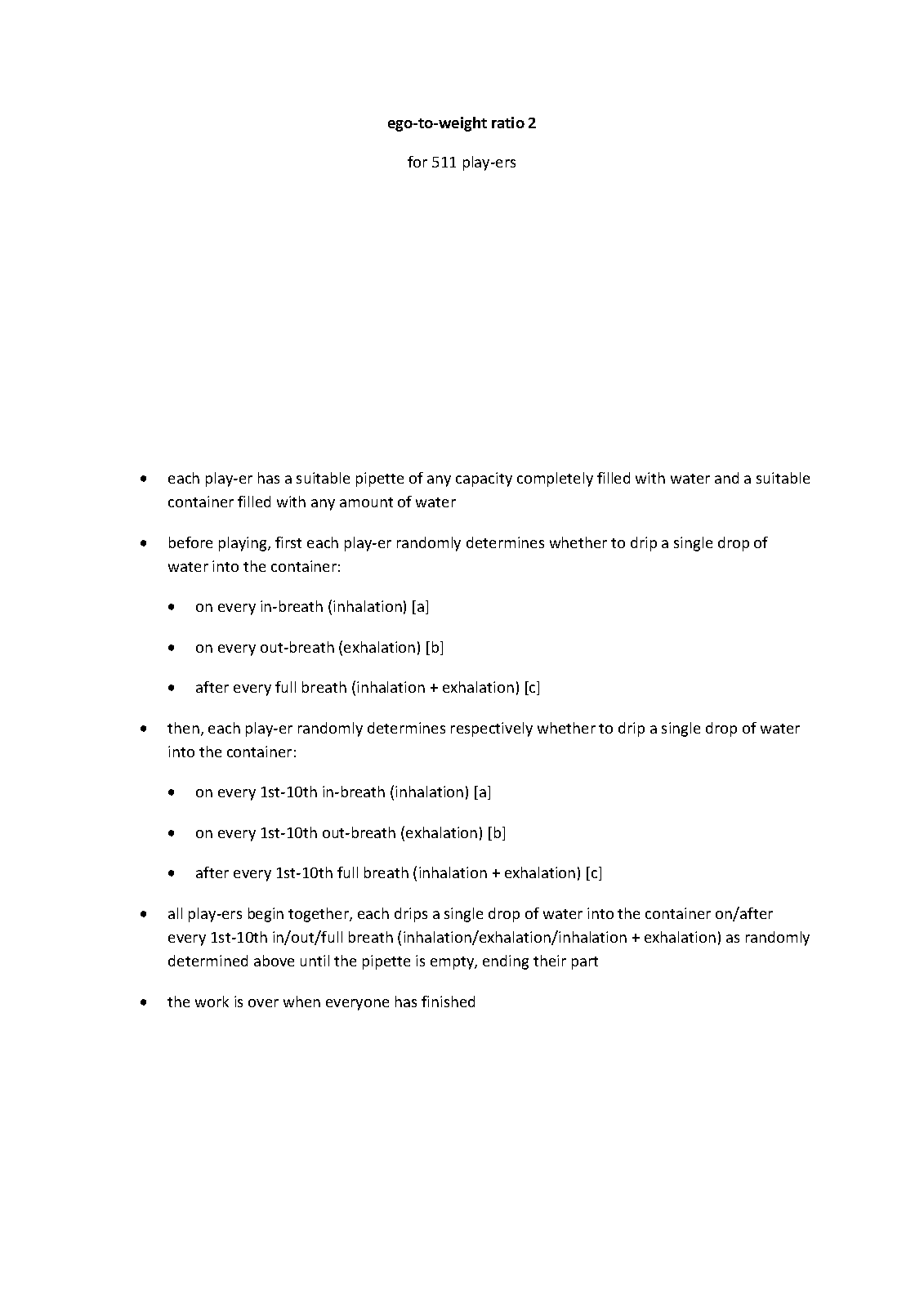 | Genre Categories | Pieces; For performers not using musical instruments |