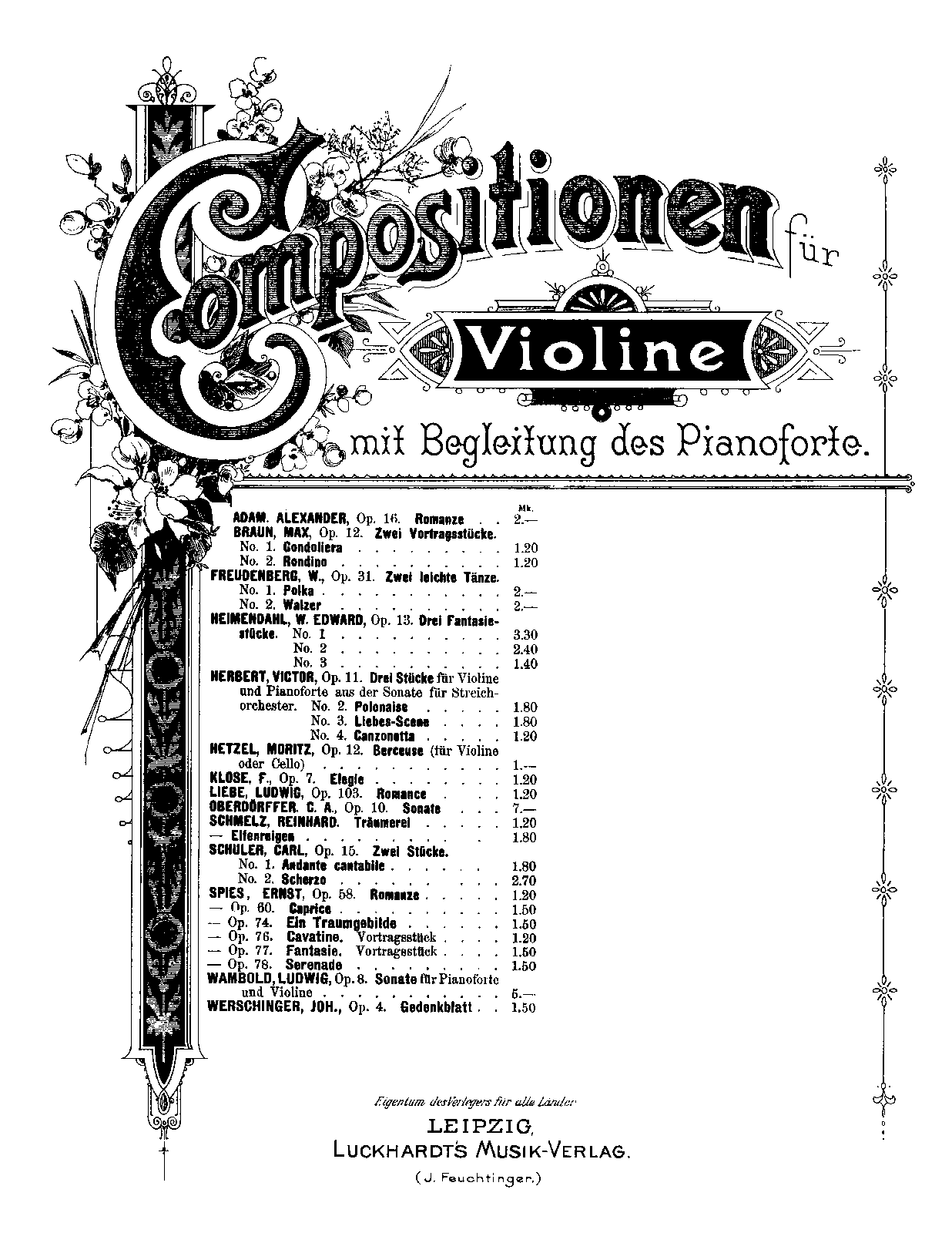 | Genre Categories | Pieces; For violin, piano; Scores featuring the violin; |