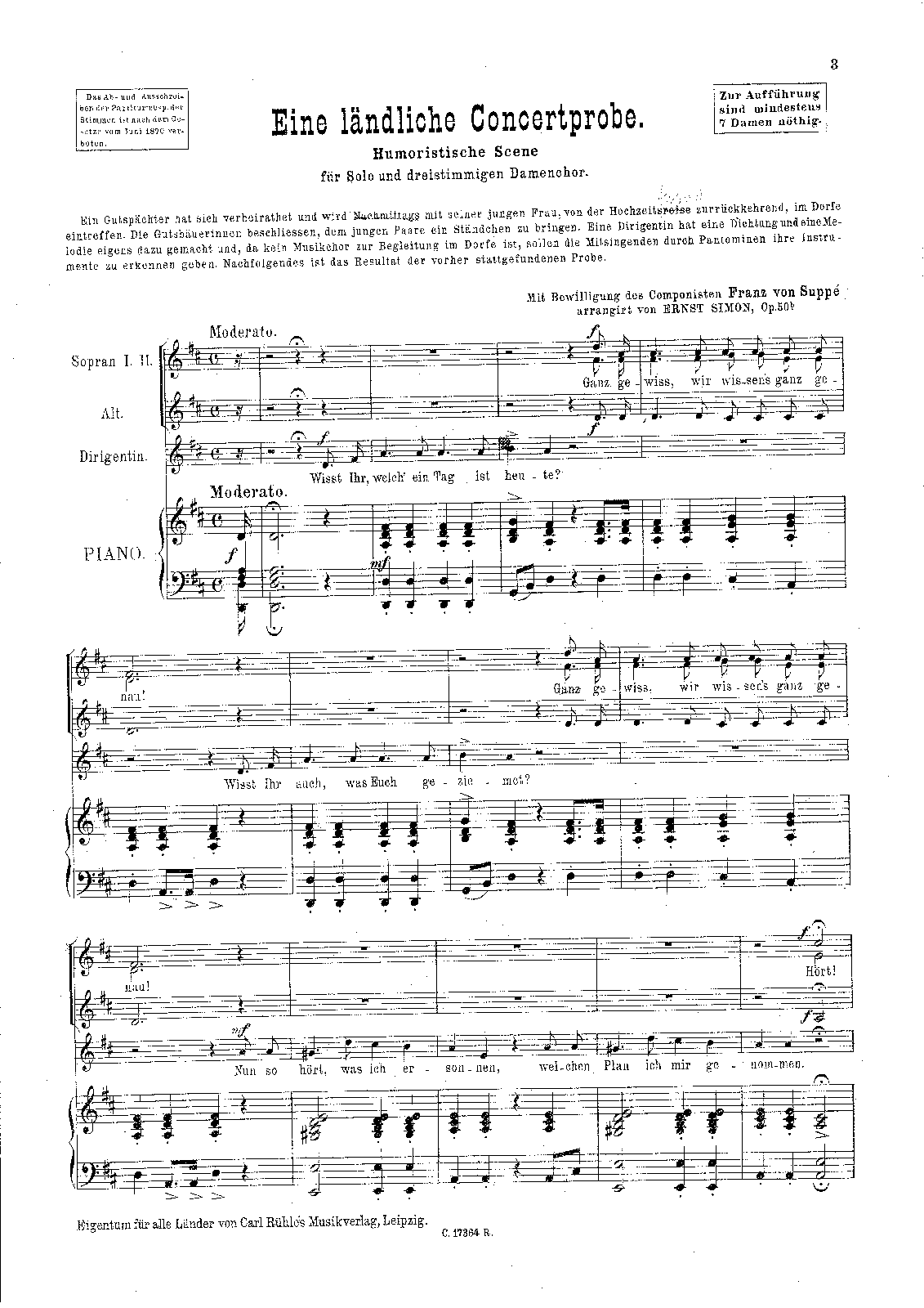 | Alternative. Title | Humoristische Scene für Solo und dreistimmigen Damenchor |