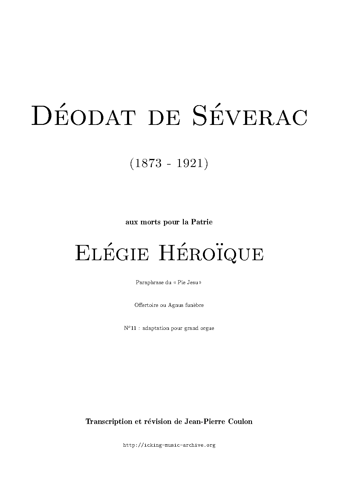 | Work Title | Elégie héroïque |
