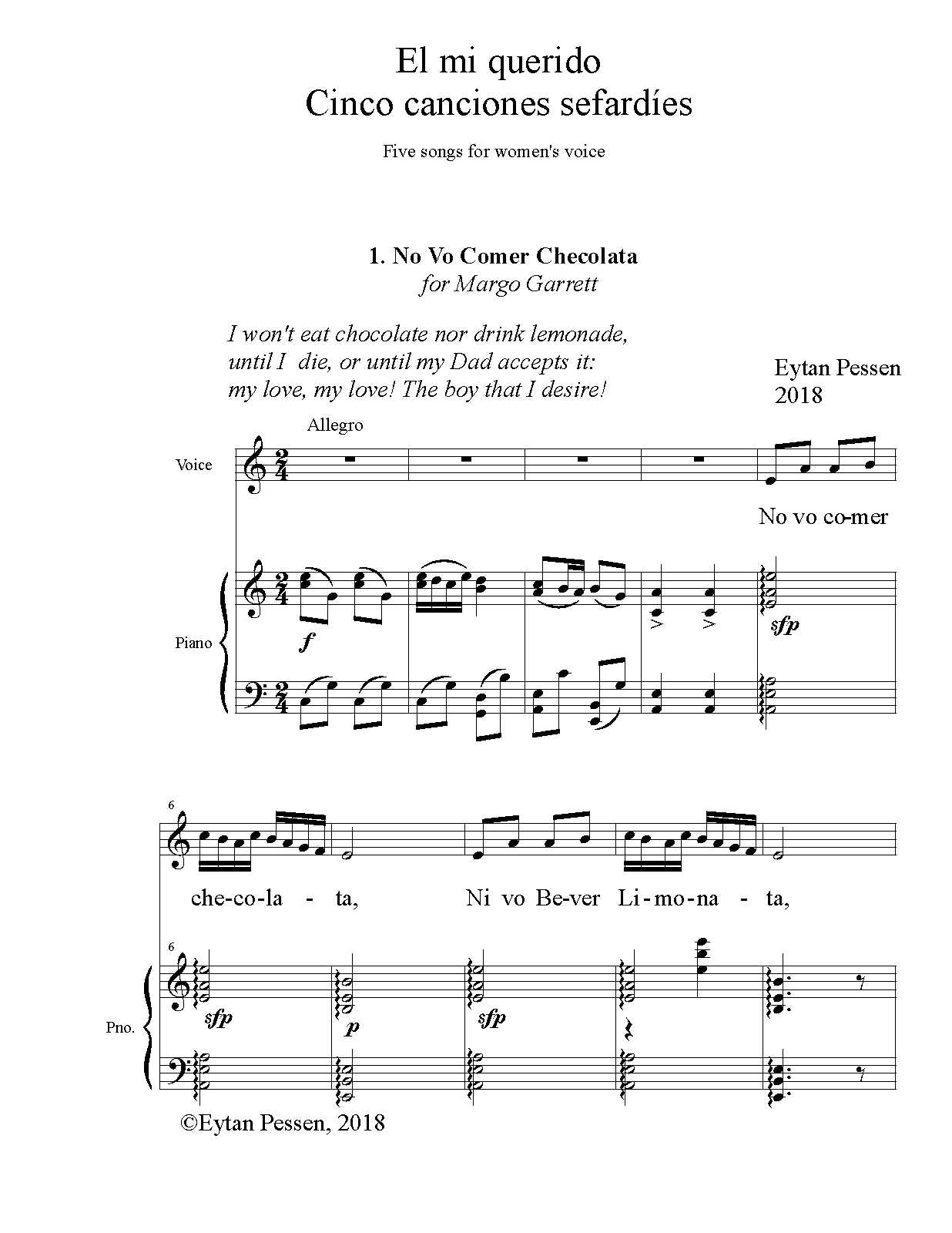 Song cycle of 5 Sephardi songs for Soprano, Mezzo or Alto
