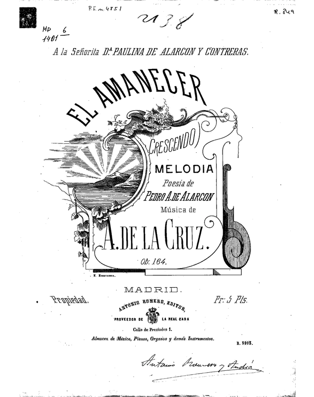 | Dedication | A la Señorita Dª. Paulina de Alarcón y Contreras |