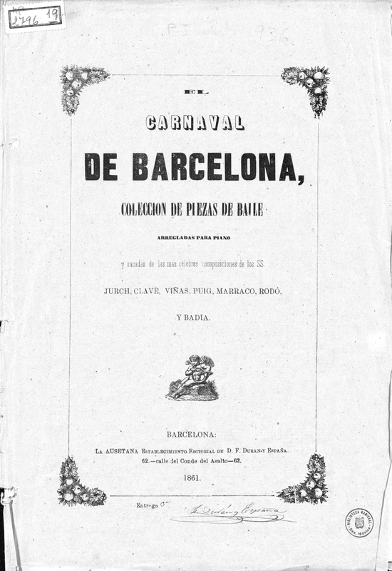 Alternative. Title Colección de piezas de baile arregladas para piano ; y sacadas de las más célebres composiciones de los S.S. Jurch, Clavé, Viñas, Puig, Marraco, Rodó y Badía
